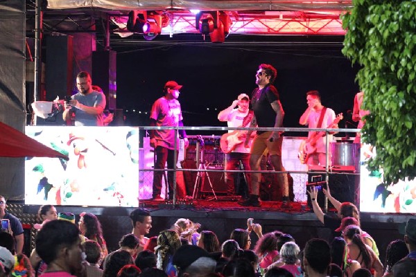 A concentração ocorreu em frente ao Teatro Municipal, ao som da artista local Kris Lima, responsável por animar os foliões no esquenta que antecedeu o cortejo.