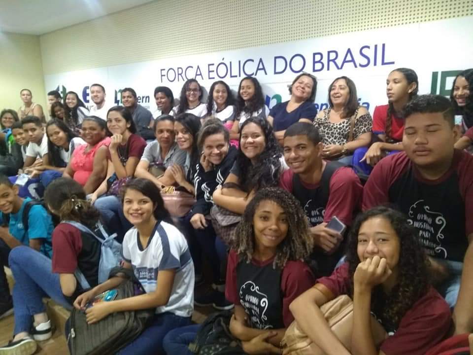 Os estudantes da Escola Municipal Alfredo Mesquita Filho, em Alagadiço Grande, participaram de uma aula de campo no Espaço Ecoposto Energia Eólica, em Maracajaú, no município de Extremoz.