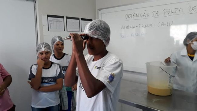 Os estudantes puderam conhecer os equipamentos que são utilizados para realizar o tratamento do leite e na produção de derivados, como o queijo, iogurte, doce, manteiga e sorvete. Os alunos também tiveram oportunidade de produzir polpa de caju processada, de acordo com os protocolos de produção.