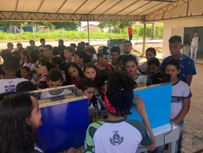 Durante a aula de campo, os 60 alunos, do 6° e 7° ano, puderam observar modelos de criação de peixes, jacarés, rãs e camarões em cativeiro. Aprenderam ainda como gerenciar todas as etapas da industrialização da pesca, desde a produção de alevinos (estágio embrionário dos peixes) até a etapa de processamento. E ainda receberam orientações sobre como comercializar e distribuir os produtos, buscando minimizar os impactos da atividade sobre o meio ambiente.