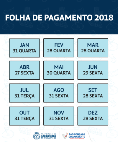 Nesta semana a Secretaria Municipal de Finanças do município divulgou o calendário 2018 de pagamento dos servidores públicos municipais. Confira aqui:
