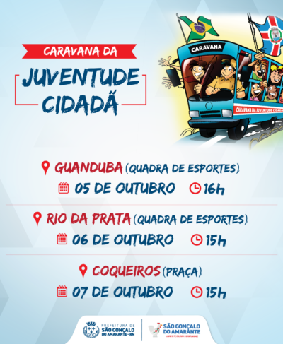 Nesta quinta-feira (05) estará em Guanduba. O encontro da equipe da prefeitura com a comunidade acontecerá a partir das 16h na quadra de esportes. Já na sexta-feira (06), em Rio da Prata, o evento acontecerá na quadra de esportes a partir das 15h. E no sábado (07), em Coqueiros, a ação acontecerá na praça, também a partir das 15h.