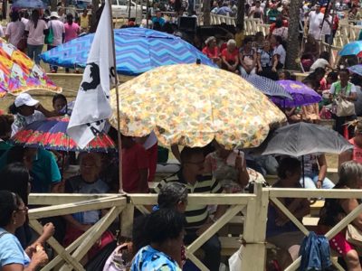 E próximo ao auge da programação, já por volta das 14h, quando haverá show com cantores locais: Fátima Santos, Padre Assis Melo e Banda Alfa e Ômega, o público já deve chegar próximo dos 30 mil, número aguardado para o espetáculo principal e missa.