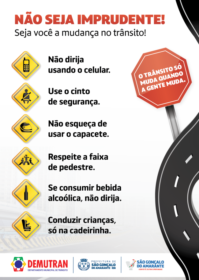 Blitz Educativa: 15h, na Rua Benedito Santana (RN-160), em frente ao Colégio Amadeus, São Gonçalo do Amarante.