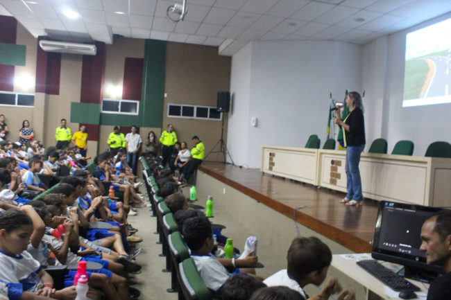 Na manhã desta quinta-feira (22), a Prefeitura de São Gonçalo, por meio do Departamento Municipal de Trânsito (Demutran) promoveu, no auditório do IFRN Campus São Gonçalo, palestras para crianças da rede municipal de educação sobre segurança no trânsito.