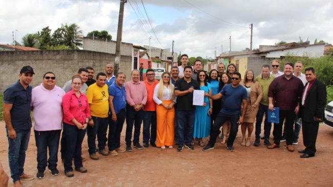 Foi assinada na manhã desta terça-feira (6) a ordem de serviço para a pavimentação das ruas Nossa Senhora das Dores, São Benedito e Santo Expedito, no bairro Santa Terezinha. O contrato, que também engloba o calçamento de outras vias no Conjunto de Todos, Santo Antônio e Uruaçu, tem um investimento total de R$ 1.619.495,07.