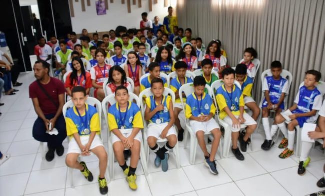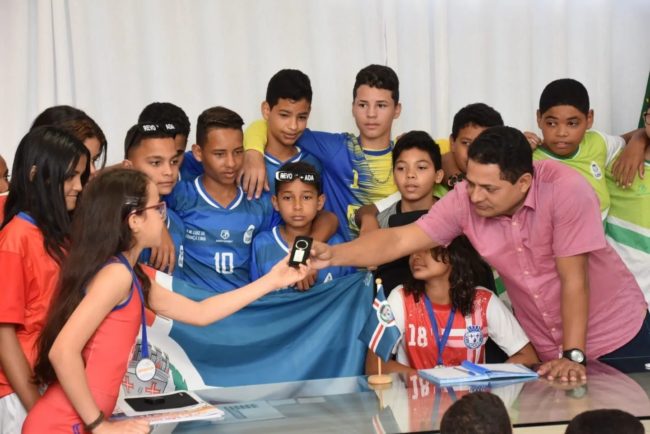 Os atletas das escolas municipais Maria Rufina, Vicente de França, Luiz de França, CEMEF e Roberto Freire foram recepcionados no Gabinete Civil.