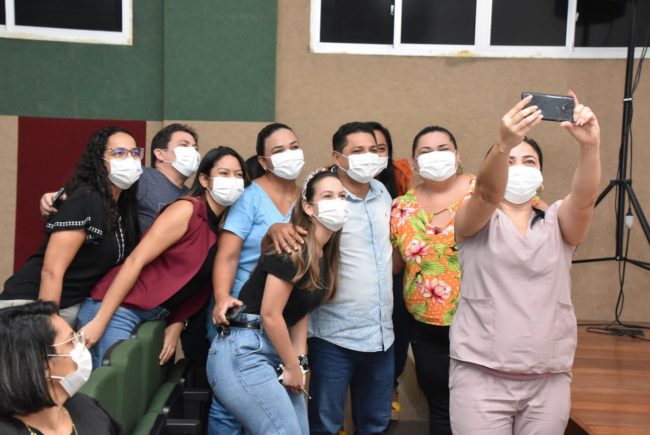 Estavam também presentes na reunião o secretário de saúde, Jalmir Simões; o diretor do Hospital Belarmina Monte, Geovane Neves; o secretário chefe do gabinete civil, Abel Soares, além do vereador Thiago Soares.