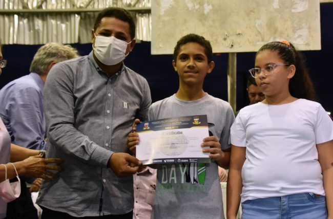 A Prefeitura de São Gonçalo do Amarante/RN realizou, nesta segunda-feira (30), a entrega de certificados do projeto "Educação de Trânsito na Escola", que foi executado na Escola Maria de Lourdes Lima, no bairro Jardins, onde foram beneficiadas mais de 260 crianças, do 5° e 6° ano do ensino fundamental II. A solenidade contou com a presença do prefeito Eraldo Paiva.