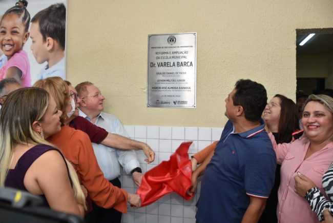 Na manhã desta quarta-feira (25), a Prefeitura de São Gonçalo do Amarante/RN entregou a reforma e ampliação da Escola Municipal Dr. Varela Barca, em Barreiros. A unidade, que atende alunos dos anos iniciais e do ensino fundamental I e II, recebeu melhorias na acessibilidade, cobertura, ventilação, iluminação e nova fachada.