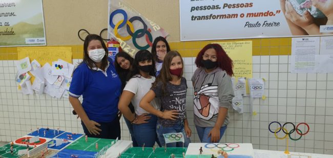 Diversas escolas do município também estão trabalhando o tema com seus alunos, como a E.M. Vicente de França, onde os estudantes construíram maquetes e desenvolveram atividades sobre as mais diversas modalidades.