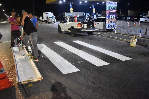 A ação contempla a pintura de faixas de pedestres e demais sinalizações que garantem mais segurança e organização no trânsito.