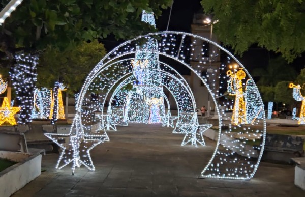 Além do Parque das Fontes, um importante ponto histórico do município também recebeu ornamentação especial. A Praça Senador Dinarte Mariz, no largo da Igreja Matriz, foi devidamente iluminada, mostrando que o Natal está presente em todo o território de São Gonçalo do Amarante.