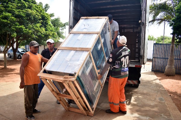 Os equipamentos são do tipo mini câmara fria, com quatro portas, utilizados em escala industrial e com peso aproximado de 150 quilos, garantindo maior capacidade de armazenamento, conservação adequada e segurança alimentar.